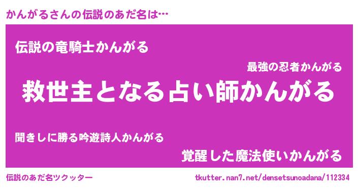 | ヒーロー風カッコイイあだ名 | 『慈愛の使者かんがる』『幻影騎士カン』 |