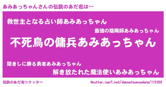 | ヒーロー風カッコイイあだ名 | 『仮面アミダー』『天弓騎士アミ』 |