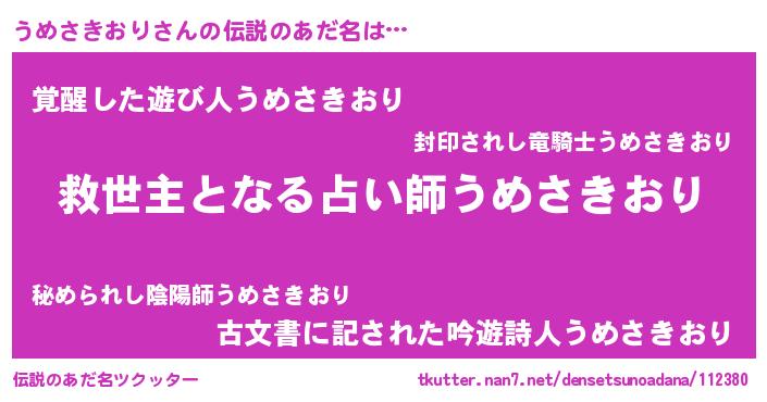 | ヘコむあだ名 | 『うめ太郎』『うめさきおり(笑)』 |