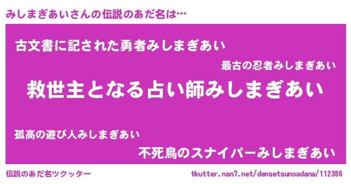 | ヘコむあだ名 | 『みしまぎあい(笑)』『みしもー』 |