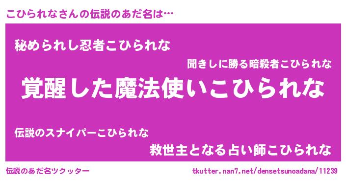 | ヒーロー風カッコイイあだ名 | 『仮面コヒダー』『究極戦士コヒラレナ』 |