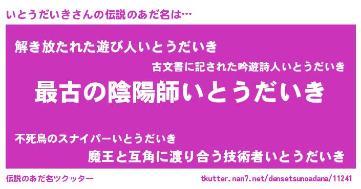 | 男性向けラノベタイトル風あだ名 | 『いとうだいきに滅ぼされるだけの簡単なお仕事です』 |