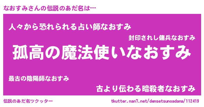 | 女子向けラノベタイトル風あだ名 | 『なおすみなんてお断りですっ。』 |