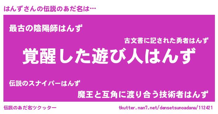 | 男性向けラノベタイトル風あだ名 | 『はんずの嫁は女の子じゃないと思った?』 |