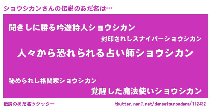 | ヘコむあだ名 | 『ショウシカン(笑)』『ショお』 |