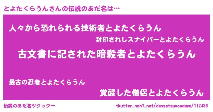 | ヘコむあだ名 | 『とよたくらうん(爆)』『とよぷりん』 |