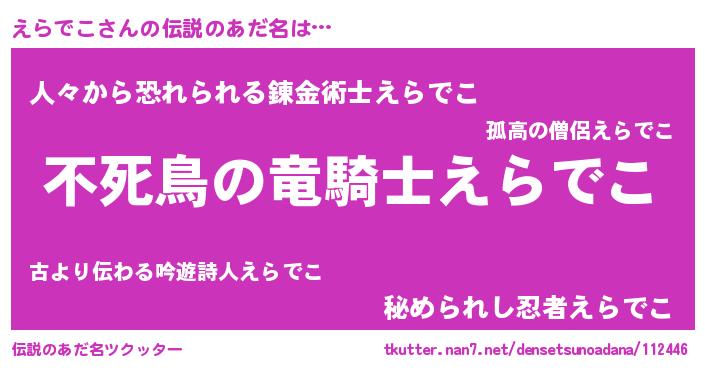 | 意味不明あだ名 | 『住所不定無職えらでこ(8歳)』 |