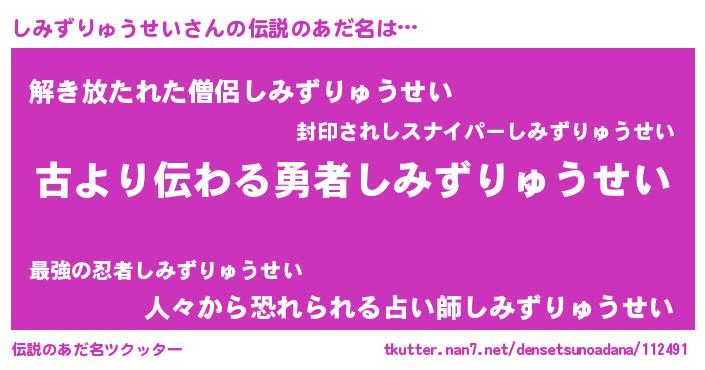 | 意味不明あだ名 | 『住所不定無職しみずりゅうせい(81歳)』 |