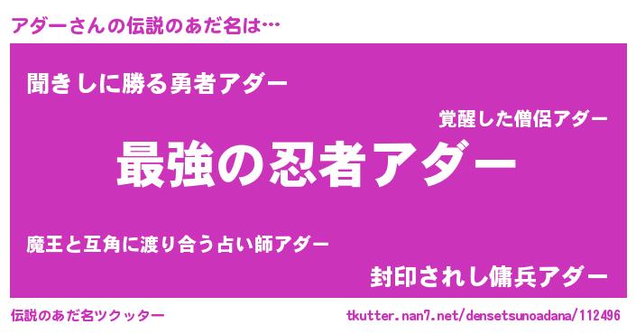 | ポケモン風あだ名 | 『アダーダネ』『ゼニアダ』 |