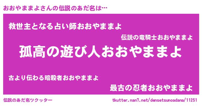 | 男性向けラノベタイトル風あだ名 | 『ダンジョンにおおやままよを求めるのは間違っているだろうか』 |