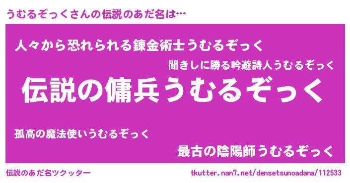 | 男性向けラノベタイトル風あだ名 | 『うむるぞっくの憂鬱』 |
