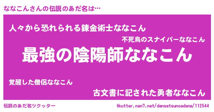 | ヒーロー風カッコイイあだ名 | 『ウルトラななこんマン』『ネオナナコン』 |