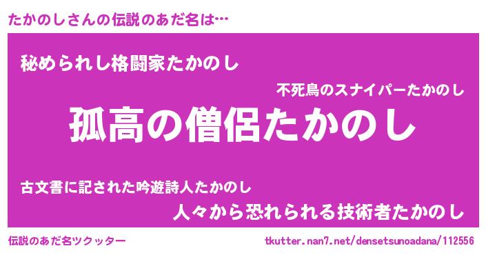 | ヒーロー風カッコイイあだ名 | 『暗黒騎士タカ』『ウルトラたかのしマン』 |