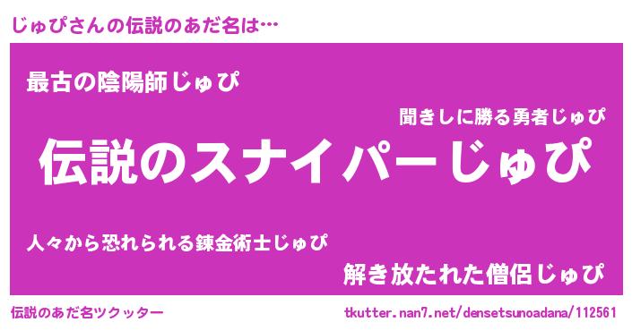 | 胡散臭い通販商品みたいなあだ名 | 『必ず成功する霊験あらたかなお札…その名も「じゅぴ」』 |