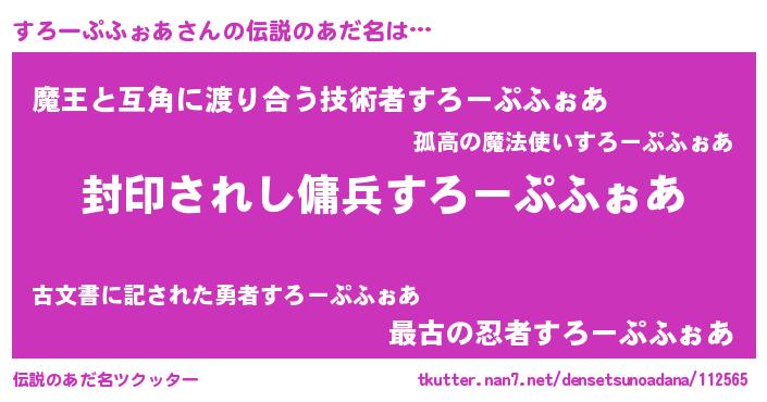| 意味不明あだ名 | 『ペロリンすろーぷふぉあ』 |