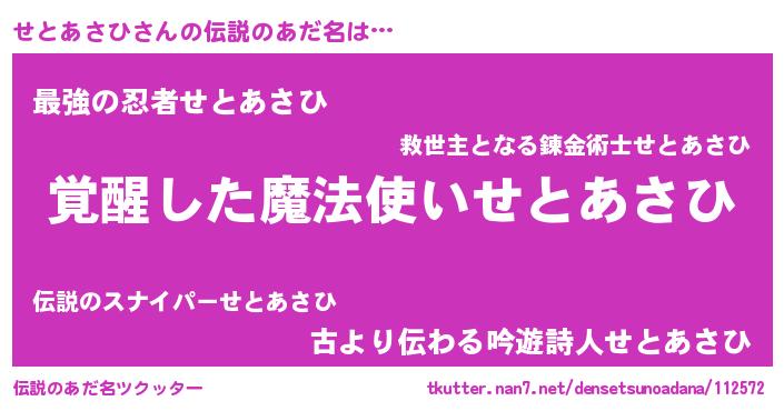 | 意味不明あだ名 | 『とにかく怪しいせとあさひ』 |