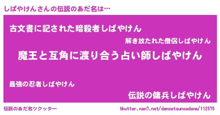 | 女子向けラノベタイトル風あだ名 | 『しばやけん恋絵巻』 |