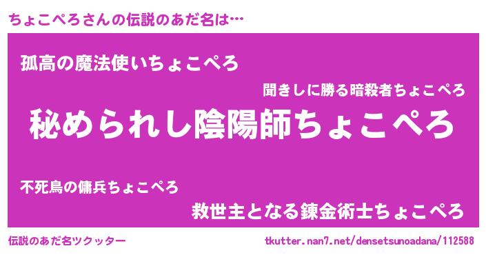 | ヒーロー風カッコイイあだ名 | 『ウルトラちょこぺろマン』 |