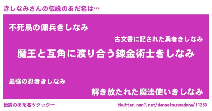 女子向けラノベタイトル風あだ名 | 『きしなみ恋絵巻』 |