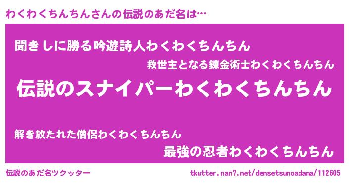 | ヒーロー風カッコイイあだ名 | 『スーパーワクワクチンチン』 |