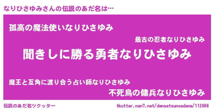 | 男性向けラノベタイトル風あだ名 | 『なりひさゆみという概念が存在しない退屈な世界 』 |