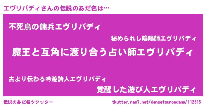 | 男性向けラノベタイトル風あだ名 | 『魔弾の王とエヴリバディ』 |