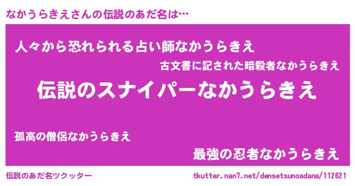 | ヒーロー風カッコイイあだ名 | 『スーパーナカウラキエ』『仮面ナカダー』 |