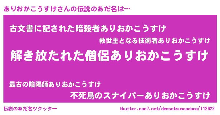 | 意味不明あだ名 | 『とにかく怪しいありおかこうすけ』 |