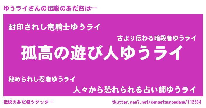 | ヒーロー風カッコイイあだ名 | 『仮面ユウダー』『最強戦士ユウライ』 |