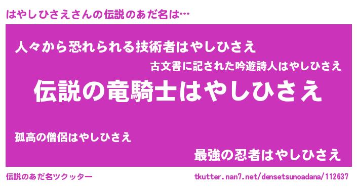 | ヒーロー風カッコイイあだ名 | 『スーパーハヤシヒサエ』『仮面ハヤダー』 |