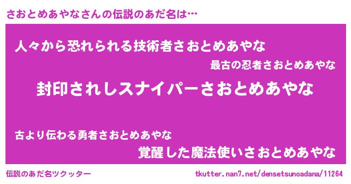 | ヒーロー風カッコイイあだ名 | 『最強戦士サオトメアヤナ』 |