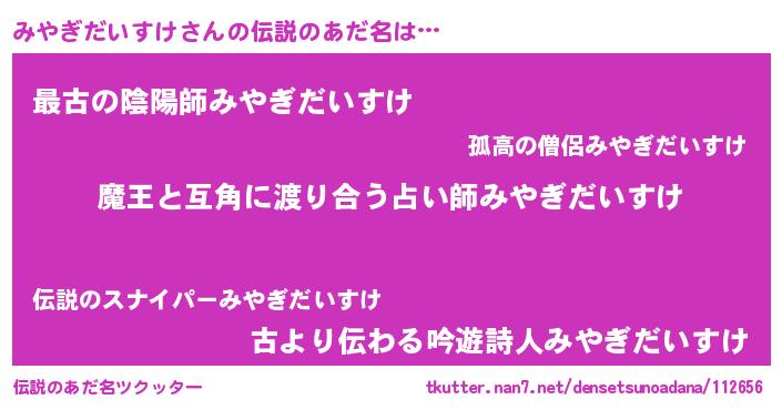 | 女子向けラノベタイトル風あだ名 | 『みやぎだいすけ恋絵巻』 |