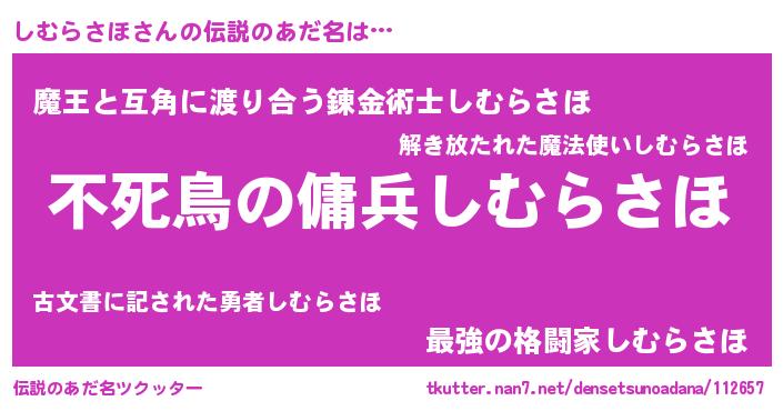 | 女子向けラノベタイトル風あだ名 | 『しむらさほ姫と円卓の騎士』 |