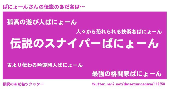 | ヒーロー風カッコイイあだ名 | 『ウルトラ戦士バニョーン』 |