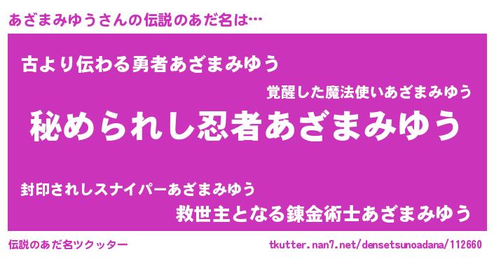 | ヒーロー風カッコイイあだ名 | 『ウルトラあざまみゆうマン』 |