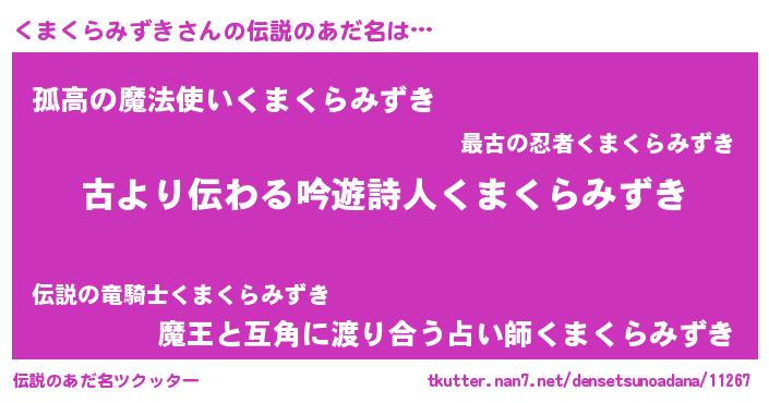 | ヘコむあだ名 | 『くまくらみずき(小並感)』『くまお』 |