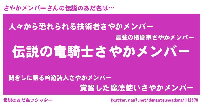| 肩書あだ名 | 『さやかメンバー大佐』 |