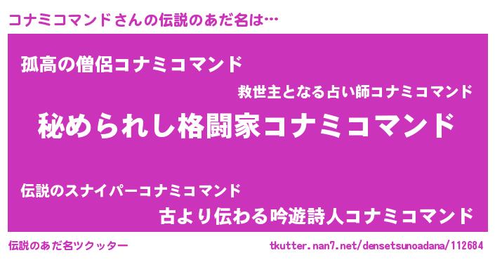| 意味不明あだ名 | 『コナミコマンドフォーエバー』 |