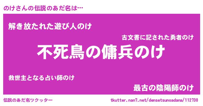 | ヘコむあだ名 | 『のけにゅー』『のけぷりん』 |