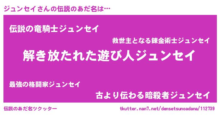 | 男性向けラノベタイトル風あだ名 | 『ダンジョンにジュンセイを求めるのは間違っているだろうか』 |