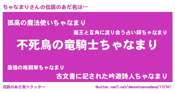 | 女子向けラノベタイトル風あだ名 | 『ちゃなまり姫と円卓の騎士』 |