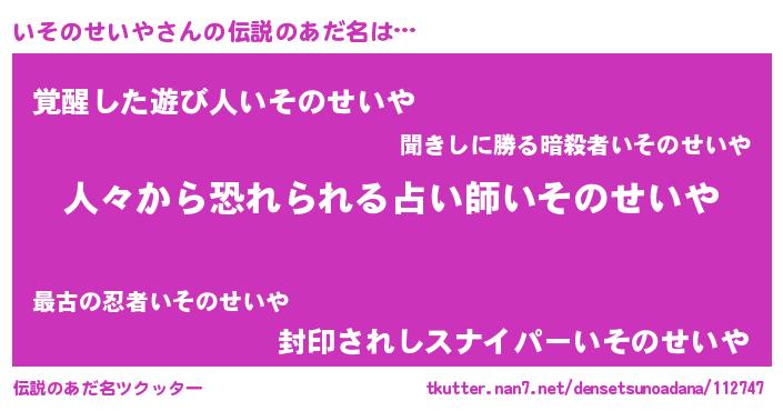 | ヒーロー風カッコイイあだ名 | 『友情の使者いそのせいや』 |