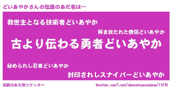 | 意味不明あだ名 | 『永久保存どいあやか』『自称どいあやか』 |