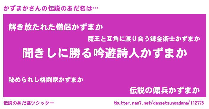 | 男性向けラノベタイトル風あだ名 | 『かずまかという概念が存在しない退屈な世界 』 |