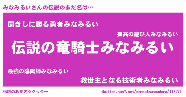 | ヒーロー風カッコイイあだ名 | 『スーパーミナミルイ』『ネオミナミルイ』 |