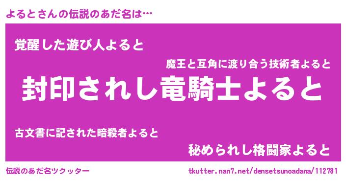 | 男性向けラノベタイトル風あだ名 | 『ヨルトアートオンライン』 |