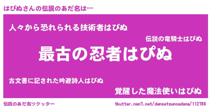 | 男性向けラノベタイトル風あだ名 | 『はたらくはぴぬさま!』『緋弾のハピヌ』 |