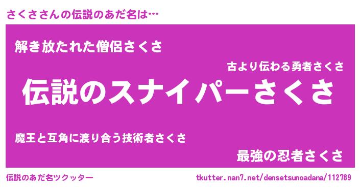 | 男性向けラノベタイトル風あだ名 | 『さくさの憂鬱』『魔法科高校のさくさ』 |