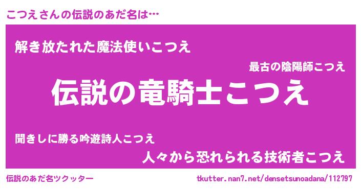 | ヒーロー風カッコイイあだ名 | 『スーパーコツエ』『魔戒騎士コツ』 |