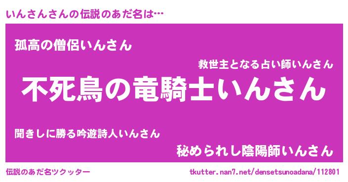 | 女子向けラノベタイトル風あだ名 | 『いんさん姫と円卓の騎士』 |